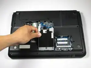 Удалите компонент жёсткого диска из его отсека. Для этого сдвиньте компонент вниз, вдали от блока аккумулятора.