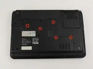 Удалите пять одинаковых винтов Phillips 3/16", которые крепят крышку жёсткого диска и памяти, используя отвертку Phillips #0.