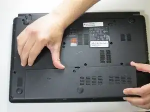 Переверните ноутбук так, чтобы задняя панель была обращена вверх.