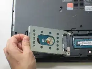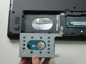 Удалите другой винт Phillips #0 длиной 8 мм, который крепит жёсткий диск к остальной части ноутбука.