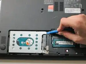 Сдвиньте жёсткий диск влево, используя пластиковый открывающий инструмент.
