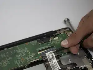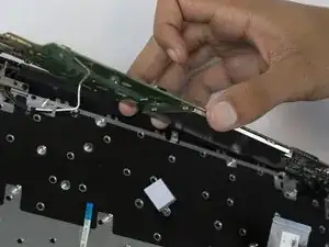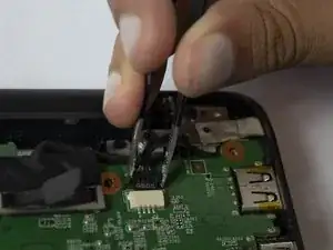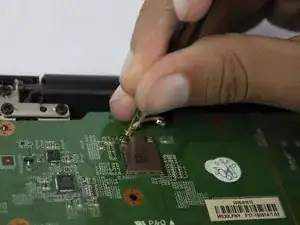 С помощью пинцета аккуратно снимите защёлки, удерживающие серебристый модуль.