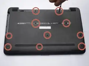 Используйте крестообразную отвертку Phillips, чтобы отвернуть 10 видимых винтов на нижней стороне.