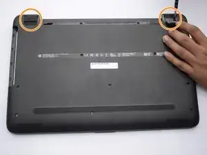 Переверните компьютер и используйте пластиковую карту, медиатор для вскрытия или инструмент для разборки, чтобы поддеть зазор между клавиатурой и нижней панелью компьютера.