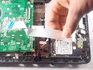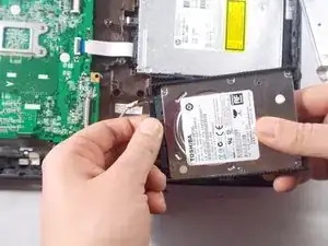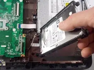 Отсоедините разъём слева от жёсткого диска, соединяющий его с остальной частью ноутбука, и извлеките жёсткий диск из ноутбука.