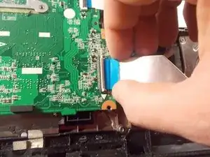 Отсоедините разъём клавиатуры, приподняв чёрную защёлку на ZIF-коннекторе.