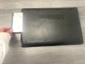 Если у вас возникают трудности с извлечением оптического привода, удерживайте ноутбук правой рукой и продолжайте тянуть левой.