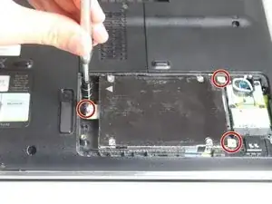 Найдите два винта 7,5 мм на крышке отсека жёсткого диска.