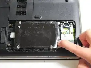 Если трудно открыть гнездо жёсткого диска, можно использовать тонкий предмет под левый край, чтобы поддеть крышку.
