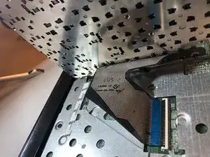 К клавиатуре подсоединён провод к материнской плате. Не оттягивайте клавиатуру, пока не отключите этот провод.