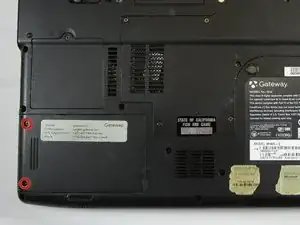 Снимите два винта Phillips #0 длиной 9 мм с задней части крышки отсека жёсткого диска.