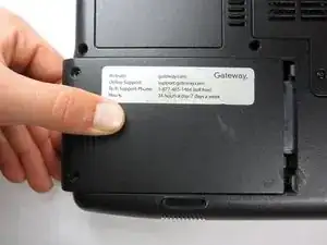Надёжно потяните батарею наружу и от корпуса ноутбука.