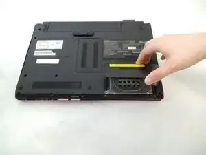 Найдите язычок для извлечения. Сдвиньте его влево, чтобы вынуть батарею из ноутбука.