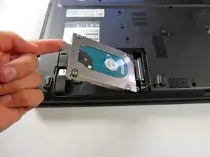 Сдвиньте большую металлическую защёлку жёсткого диска от места её крепления.