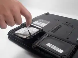 Оттяните чёрную ленту назад и вверх, чтобы извлечь жёсткий диск.