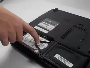 Вытяните жёсткий диск, потянув за прикреплённую к нему ленту.