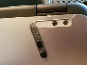 Отделив серебристые участки, приподнимите переднюю часть нижней панели и сдвиньте её горизонтально назад в сторону петли. Чёрная задняя часть «охватывает» область петли, её нельзя поднимать вверх так же, как остальную нижнюю панель.