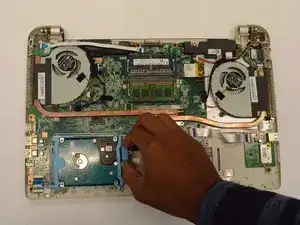 Используйте пластиковую крышку над жёстким диском, чтобы приподнять его.