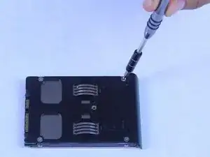Закрепите новый жёсткий диск на оригинальной крышке жёсткого диска, вставьте винты во всех четырёх углах крышки.