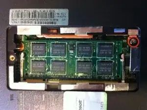 Найдите отсек оперативной памяти и открутите винт. Примечание: винт нельзя вынуть из крышки отсека.