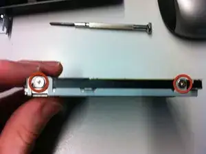 Удалите оставшийся винт внизу справа от корзины жёсткого диска.