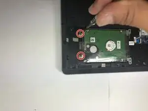 Удалите четыре (4) винта 2,5×8 мм, крепящие жёсткий диск, с помощью крестовой отвёртки Phillips №1.