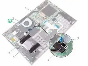 Протяните кабель жёсткого диска через направляющие прокладки на подставке для ладони и узле клавиатуры.