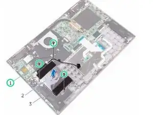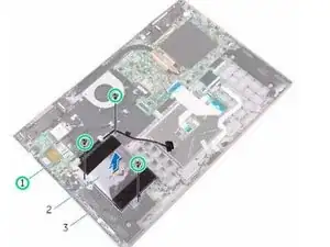 Замените винты, фиксирующие узел жёсткого диска к подставке для ладони и узлу клавиатуры.