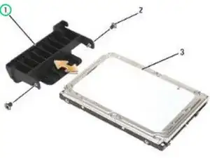 Удалите четыре винта M3 x 3 мм, которые фиксируют жёсткий диск.