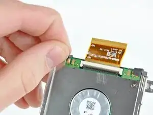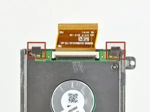 Используйте ноготь или плоский конец лопатки, чтобы поднять фиксирующий язычок на ZIF-разъёме кабеля жёсткого диска.