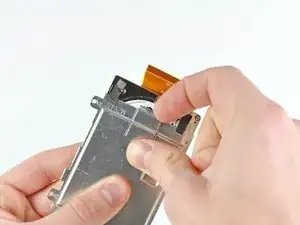 Используйте ноготь или плоский конец лопатки, чтобы поднять фиксирующий язычок на ZIF-разъёме ленточного кабеля SIM-карты.