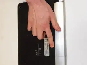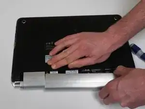 Переверните ноутбук дном вверх так, чтобы батарея была направлена вниз.