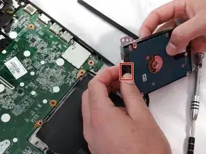 Снимите 4 винта 5,5 мм, крепящие жёсткий диск к корпусу.