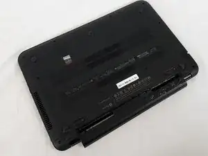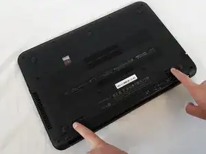 Переверните ноутбук так, чтобы батарея была обращена к Вам.