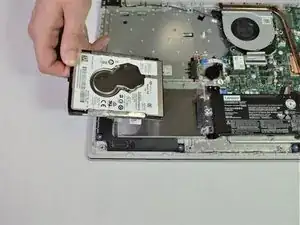 Осторожно приподнимите жёсткий диск с левой стороны.