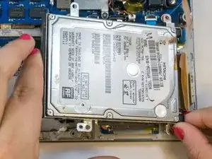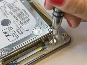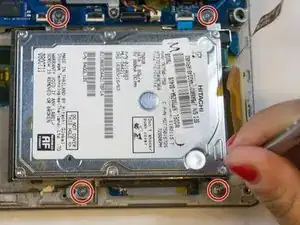 Используя отвёртку Phillips#00, снимите четыре винта 4,5 мм, фиксирующие жёсткий диск.