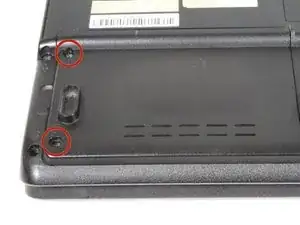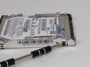 Найдите жёсткий диск в левом углу и выкрутите два винта Phillips #1 длиной 4 мм.