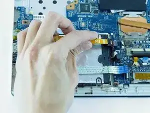 Вытащите ленточные шлейфы из разъёмов материнской платы.