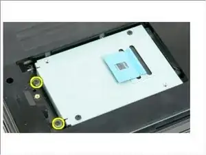 Снимите два винта, удерживающие жёсткий диск на месте.