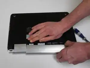 Поместите ноутбук экраном вниз на устойчивую поверхность и найдите переключатель извлечения батареи.