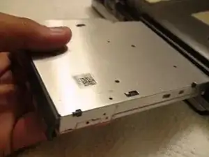 Как только он немного выдвинется, достаньте DVD-привод до конца рукой.