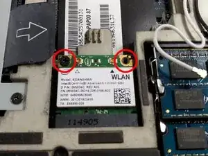 После того как кабели сняты, используйте подходящую отвертку, чтобы удалить винты, удерживающие Wi-Fi карту.