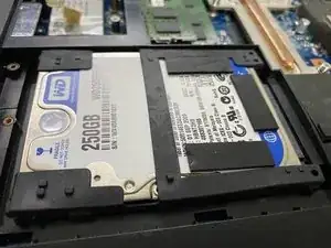 После удаления нижней панели вы должны увидеть жесткий диск прямо здесь.