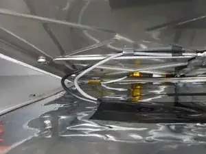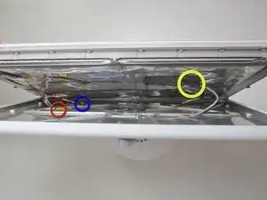 Пока шнуры всё ещё подключены, получите доступ к внутренним компонентам дисплея сверху.