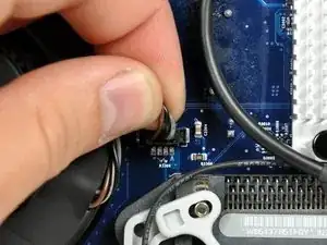 Отсоедините разъём вентилятора процессора от его гнезда на плате логики, потянув его вверх.