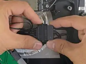 Изображения в этом шаге взяты из iMac 2017 года. Ваши кабели могут выглядеть немного иначе, но процедура остаётся той же.