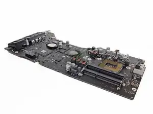 Поднимите логическую плату прямо вверх и выньте её из iMac.