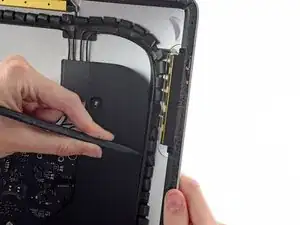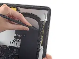 Возможно, потребуется отогнуть клей дисплея, выстилающий нижний край корпуса iMac, чтобы получить доступ к винтам.