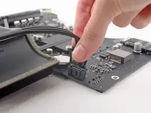 Выньте кабель камеры iSight прямо из его гнезда на плате логики.