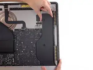 На этом этапе вдоль нижней части дисплея остаётся полоса клея, которая держит дисплей в рамке как петля. Вы можете ослабить этот клей, несколько раз поднимая и опуская дисплей.